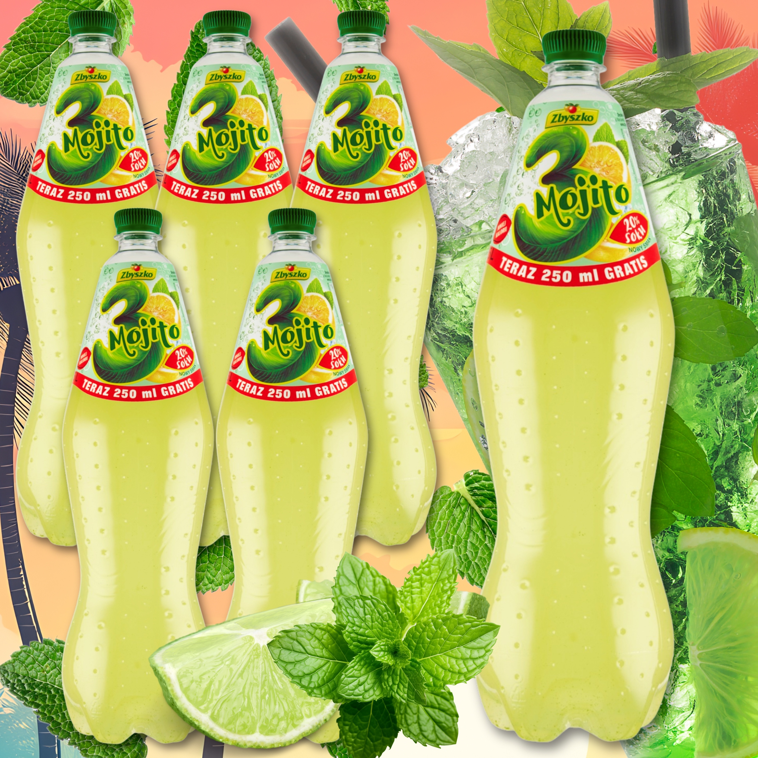 6x Zbyszko 3 Mojito Orzeźwiający Napój gazowany 1,75L ZGRZEWKA