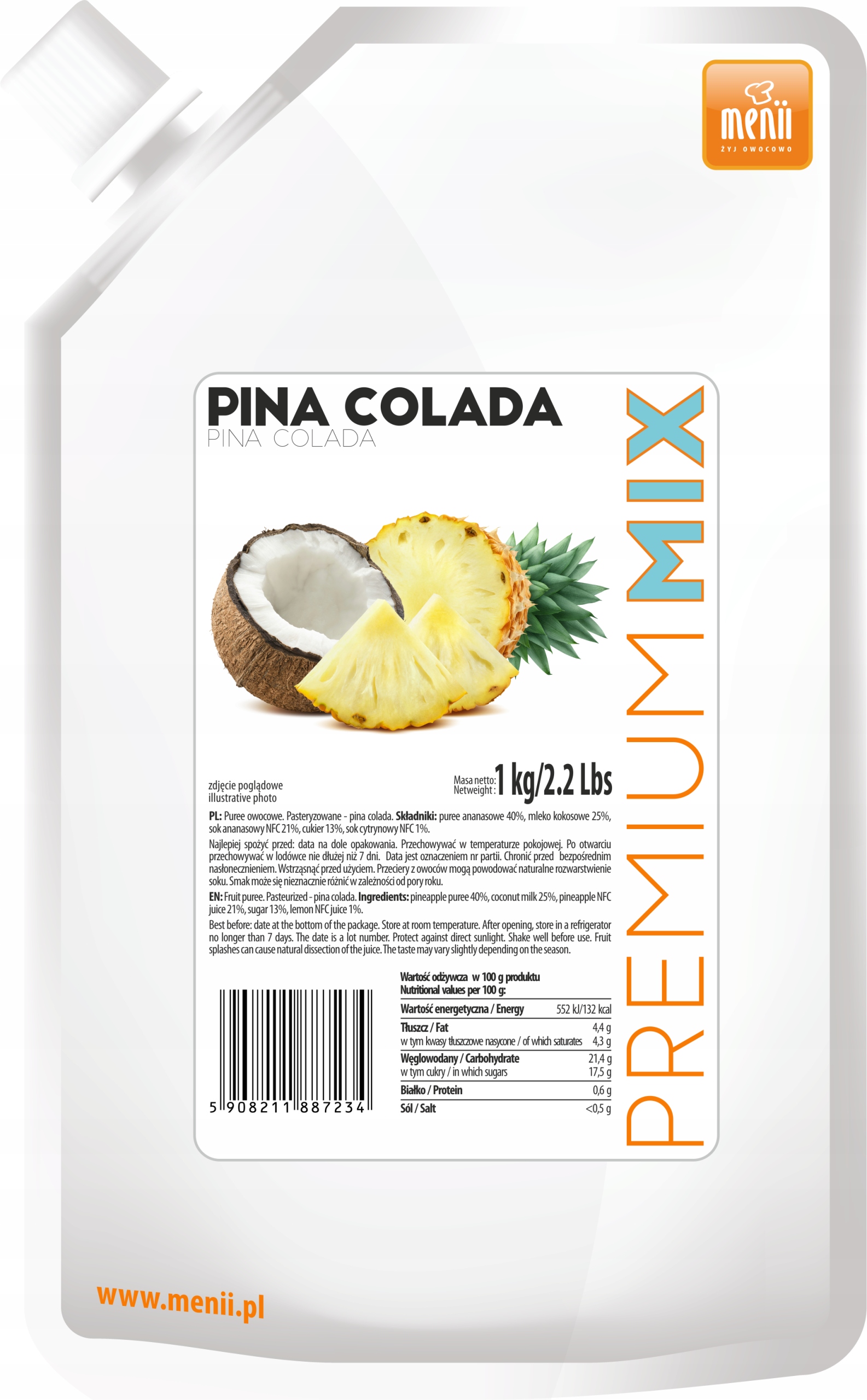 MENII Premium Puree MIX PINA COLADA Pulpa Owocowa Desery Lody Ciasta 1KG